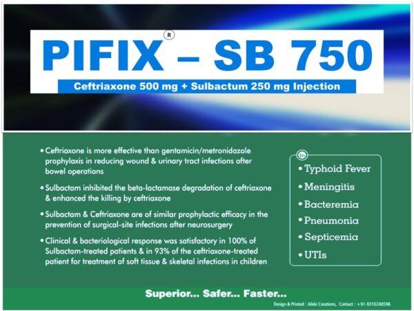 Ceftriaxone 500 mg + Sulbactum 250 mg Injection